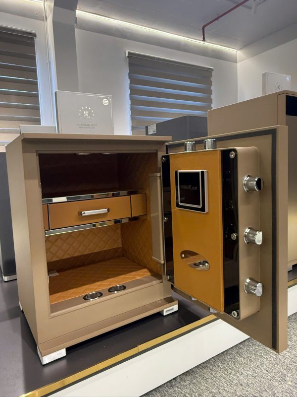Két sắt thông minh Kassler KL-55LS7 tích hợp các phương thức mở khóa hiện đại như: vân tay siêu nhạy, mã số cá nhân (PIN) và chìa khóa cơ dự phòng – cho trải nghiệm bảo mật linh hoạt và dễ sử dụng. (Không sử dụng nhận diện khuôn mặt) -