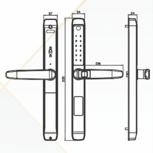 - Mặt khóa ngoài: Hợp kim nhôm, mặt cảm biển kính cường lực