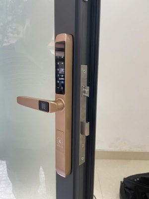 Hình ảnh thực tế Khóa cửa nhôm Kassler KL-599TD AA Champagne App TTlock