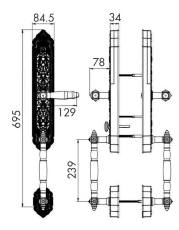 - Kích thước thân khóa ngoài (Rx Cx S): 84,5 x 710x 34 mm